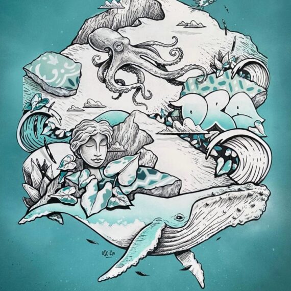 L’Envol – 90x90cm – acrylique et encre sur toile